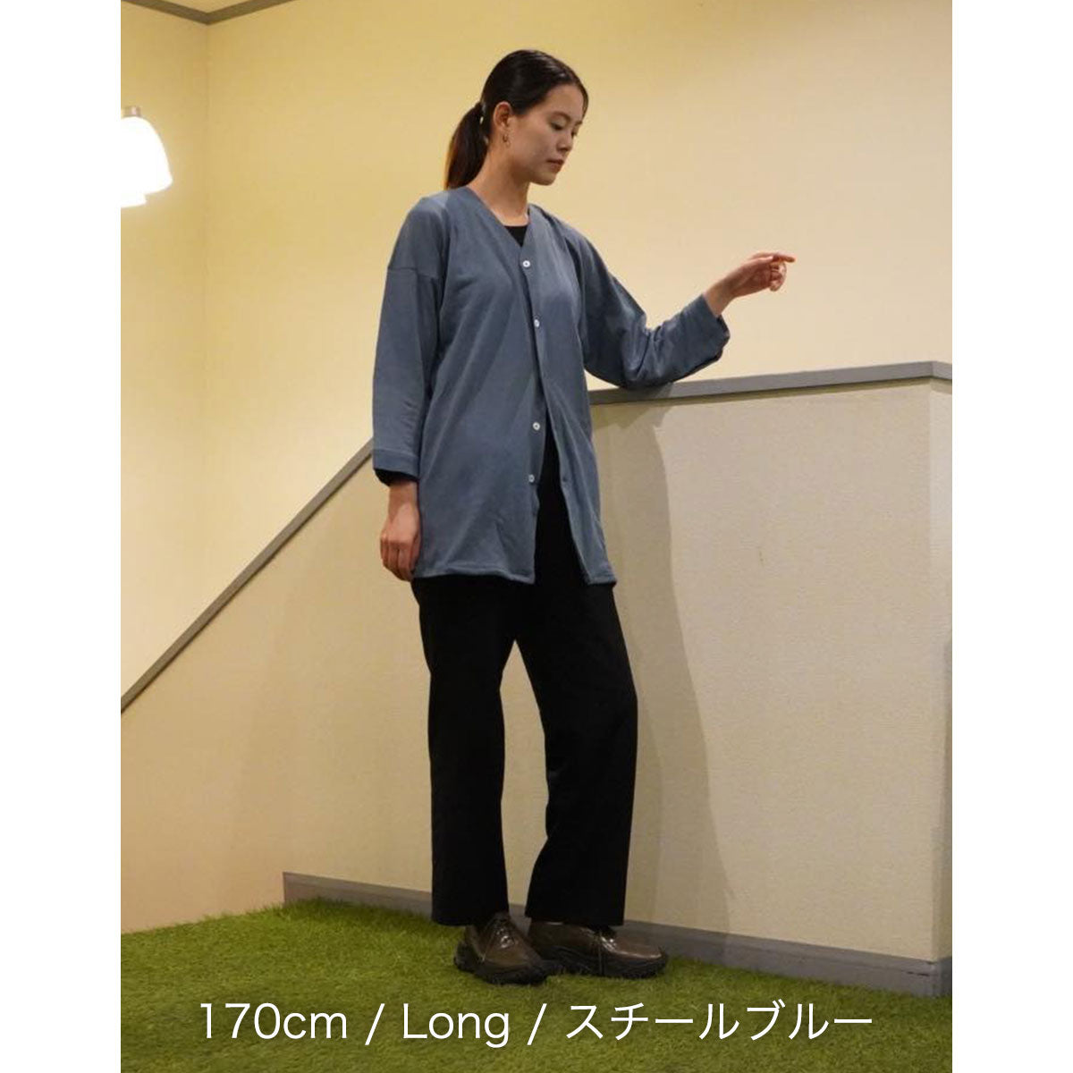 Long-sleeved knitted buttoned shirt, designed based on a Koi-kuchi shirt (a type of men’s underwear worn especially at Japanese festivals)